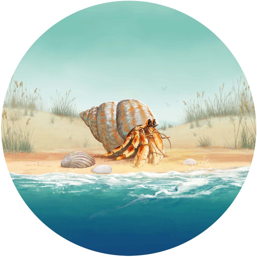 Breng de heremietkreeft veilig naar zee voordat de golf zich terugtrekt.